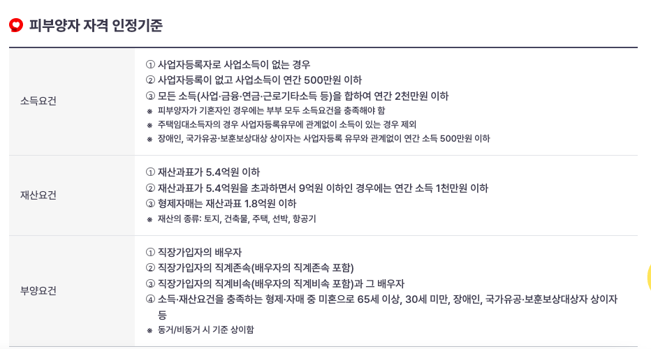 - 소득 기준 : 피부양자의 소득이 일정 기준 이하이어야 하며 이 기준은 매년 변동될 수 있으므로 최신 정보를 확인하는 것이 중요합니다.