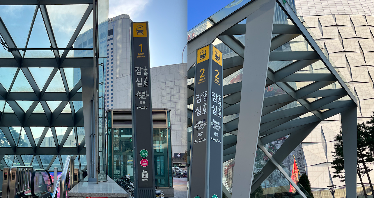 ① 잠실역 1번 출구 또는 2번 출구를 통해 지하 1층으로 내려갑니다.