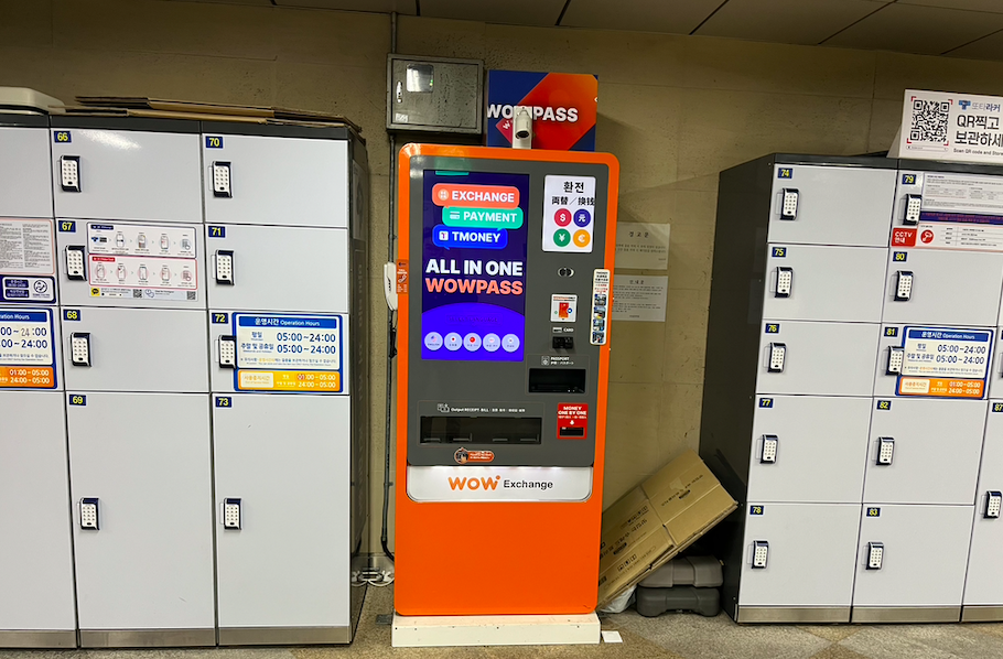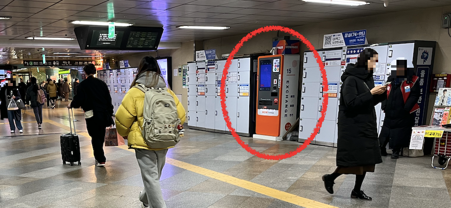 ② 지하 1층으로 내려가셔서 역사 방향으로 가시면 보관함이 보이는데 그 사이에 와우익스체인지 무인환전기가 있습니다.