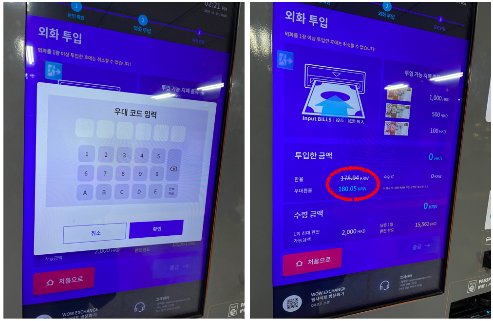 얼마 전 홍콩 여행 후 환전하지 못한 홍콩달러가 있어 환전소를 찾던 중 'wow exchange' 무인환전기가 집 근처 잠실역 내 있다는 것을 알게 되었습니다. 찾아보니 홈페이지에 들어가면 환율을 우대받을 수 있는 코드로 함께 준다고 해서 신청했습니다.