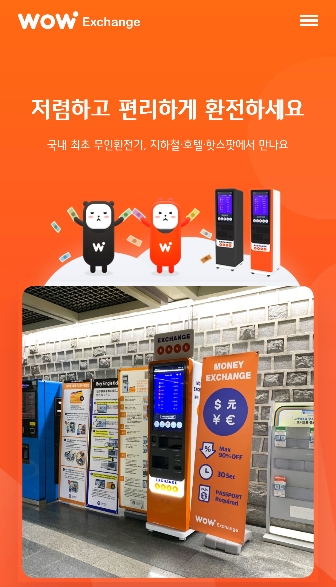 와우익스체인지는 국내 최초 무인환전기로 공항, 지하철, 호텔, 관광지 224곳 이상에 설치가 되어 있다고 합니다. 설치 위치에 대한 자세한 내용은 아래 'wow exchange 위치 찾기'에서 확인해 보시기 바랍니다.