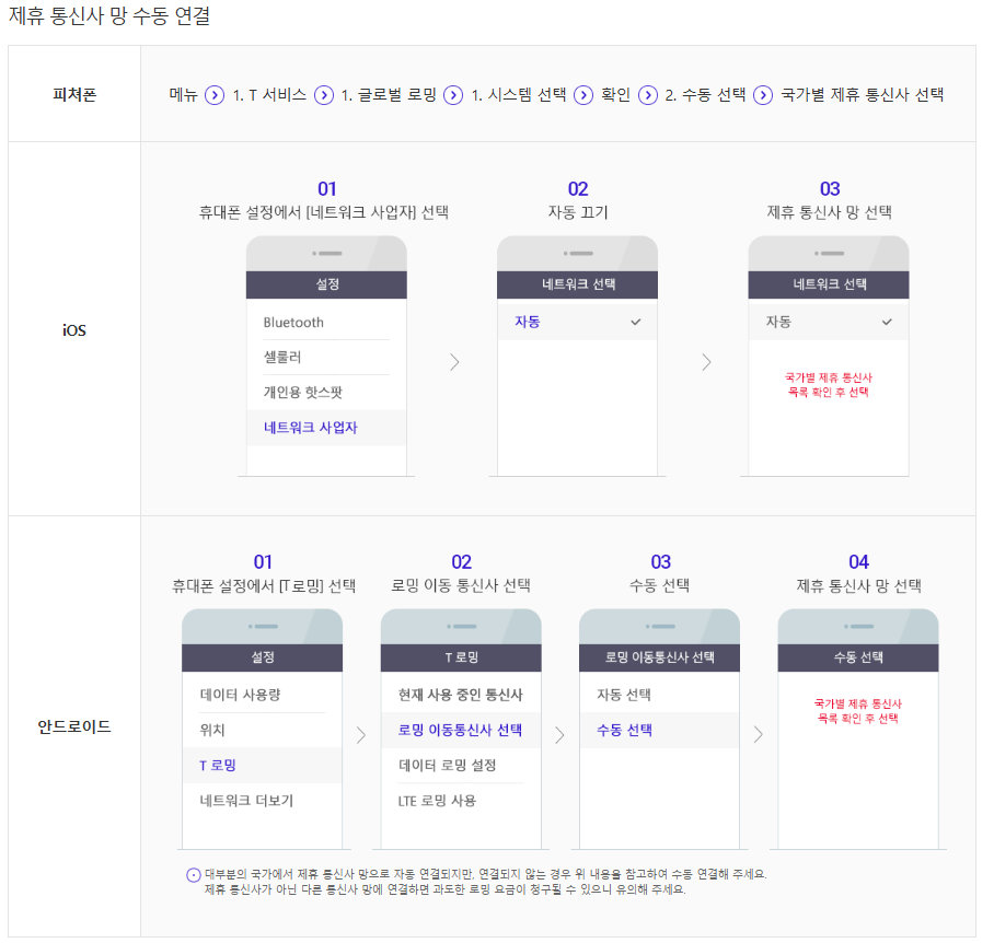 2) SKT 로밍 사용 방법