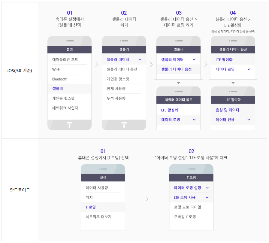 2) SKT 로밍 사용 방법