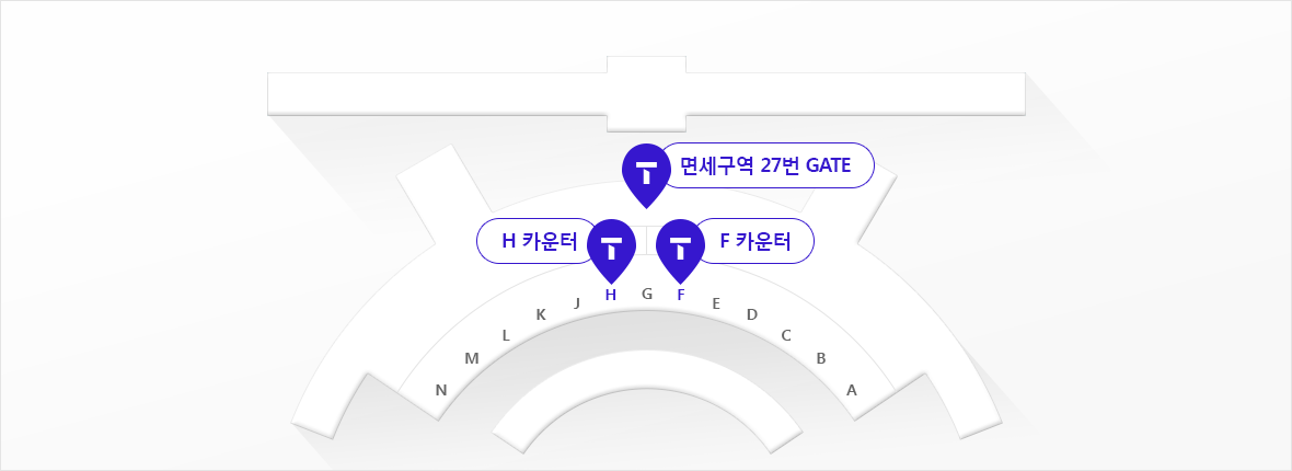 제1여객터미널 3층 출국장 H, F 카운터와 면세구역 27번 게이트 총 3곳에 SKT T로밍센터가 위치하고 있으며, H와 F 카운터에서는 baro Box 및 로밍 폰임대와 자동로밍 업무를 처리하며 면세구역 27번 게이트 쪽에서는 자동로밍 업무만 처리하고 있습니다. 운영시간은 H, F 카운터 쪽은 6시부터 22시까지, 면세구역 27번 게이트 쪽은 7시부터 21시까지입니다.